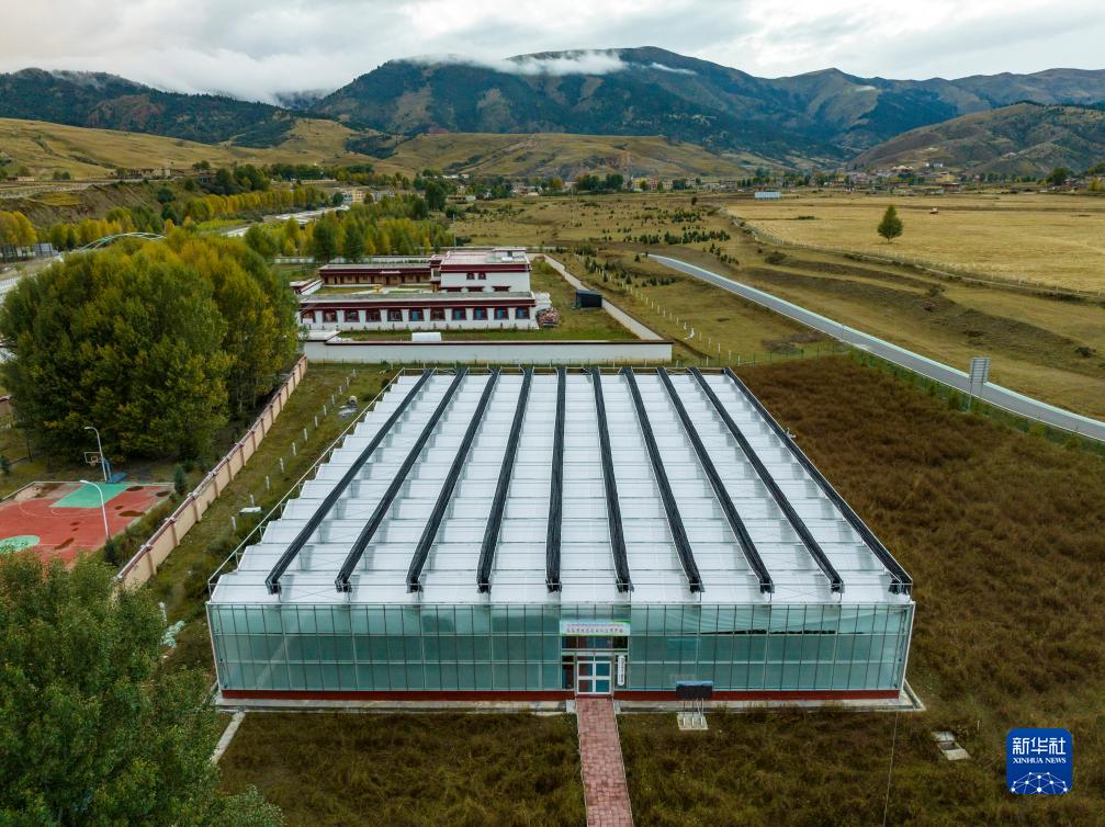 這是10月13日在理塘縣瑪吉阿米花園農莊拍攝的智慧農業(yè)無(wú)土栽培館(無(wú)人機照片)。