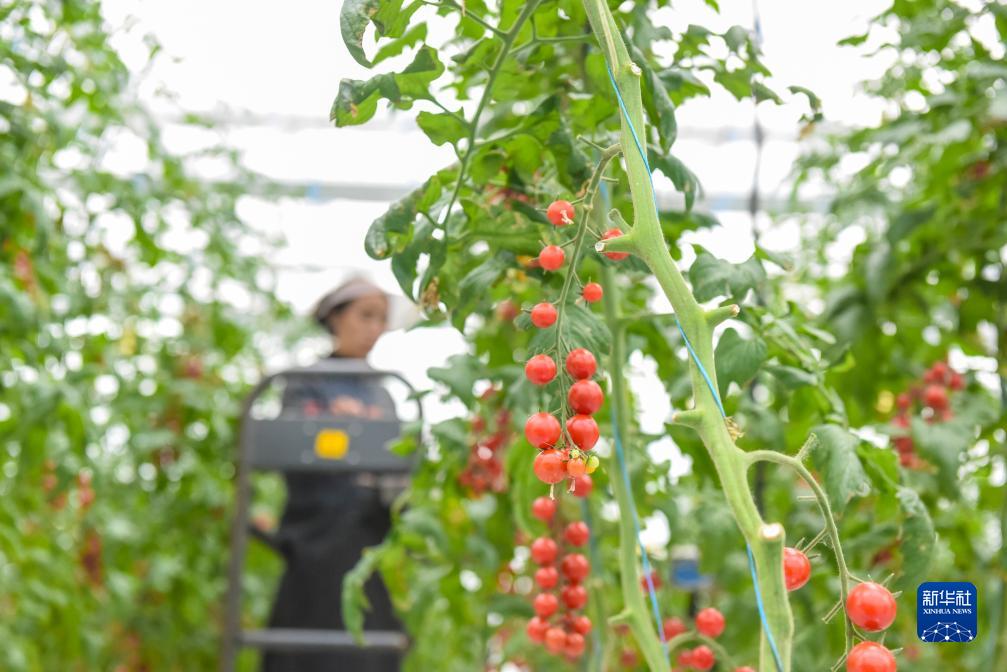 10月13日,在理塘縣瑪吉阿米花園農莊的智慧農業(yè)無(wú)土栽培館,當地藏族群眾采摘紅色小番茄。