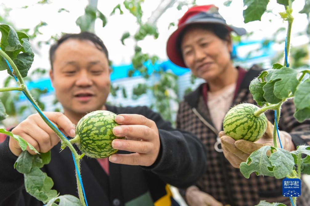 10月13日,在理塘縣瑪吉阿米花園農莊的智慧農業(yè)無(wú)土栽培館,農莊負責人丁義(左)向當地藏族群眾卓瑪擁忠講解玲瓏西瓜的管理技術(shù)和注意事項。
