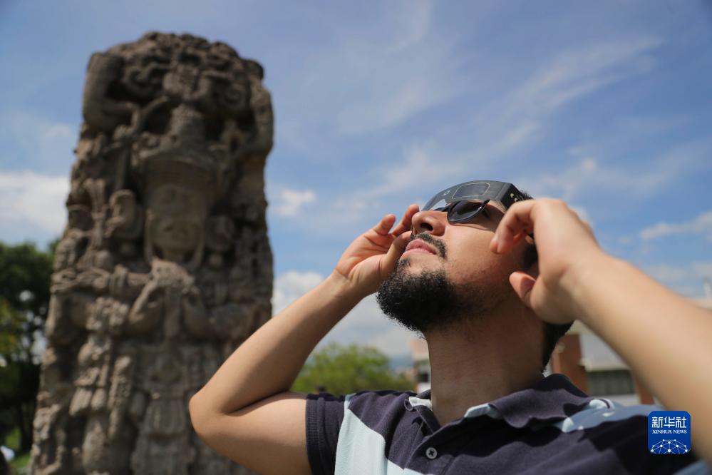 10月14日,一名男子在洪都拉斯首都特古西加爾巴觀(guān)看日食。