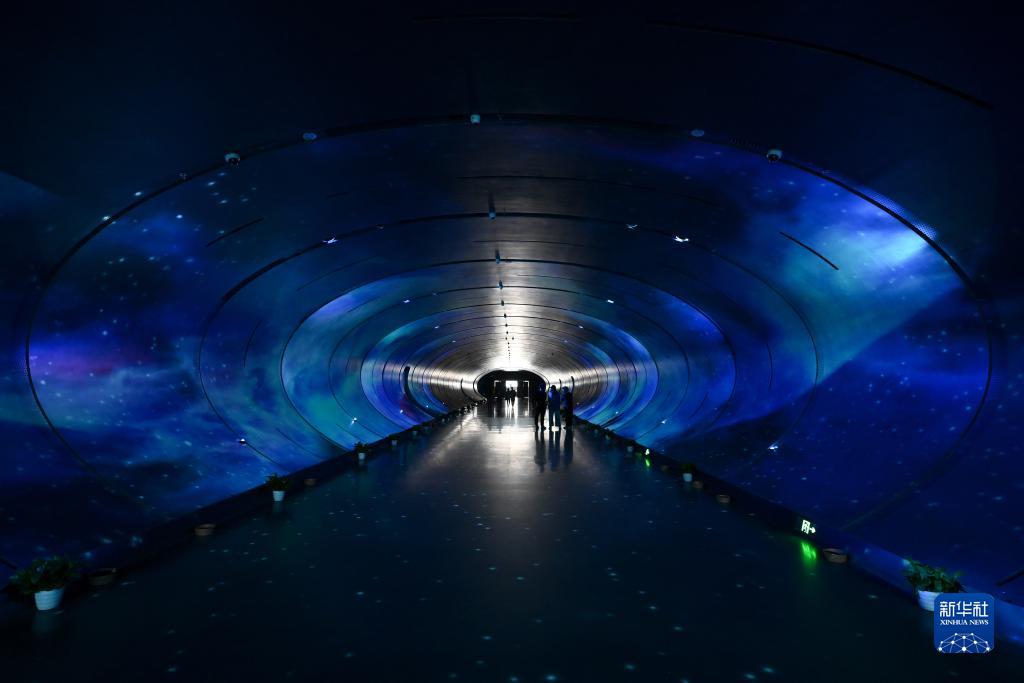 這是10月14日在成都科幻館內拍攝的地下一層步行通道“時(shí)空隧道”。