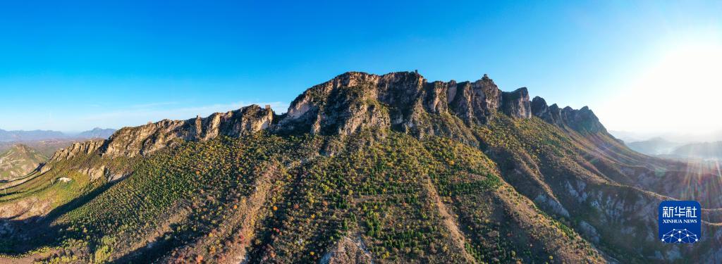 朝陽(yáng)下的司馬臺長(cháng)城(無(wú)人機全景照片,10月15日攝)。