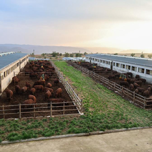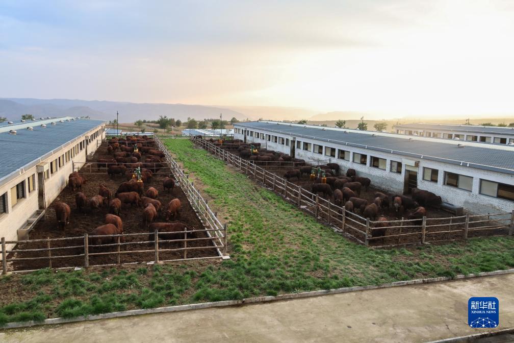 這是10月13日在甘肅省平?jīng)鍪袥艽h旭康食品有限責任公司拍攝的肉牛育肥基地。