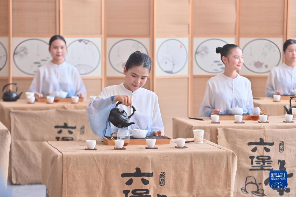 10月15日,在梧州市蒼梧縣六堡鎮六堡茶文化廣場(chǎng),工作人員進(jìn)行茶藝表演。