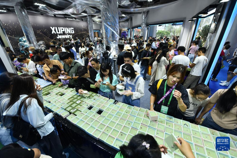 10月15日,在梧州市六堡茶城,觀(guān)眾選購飾品。