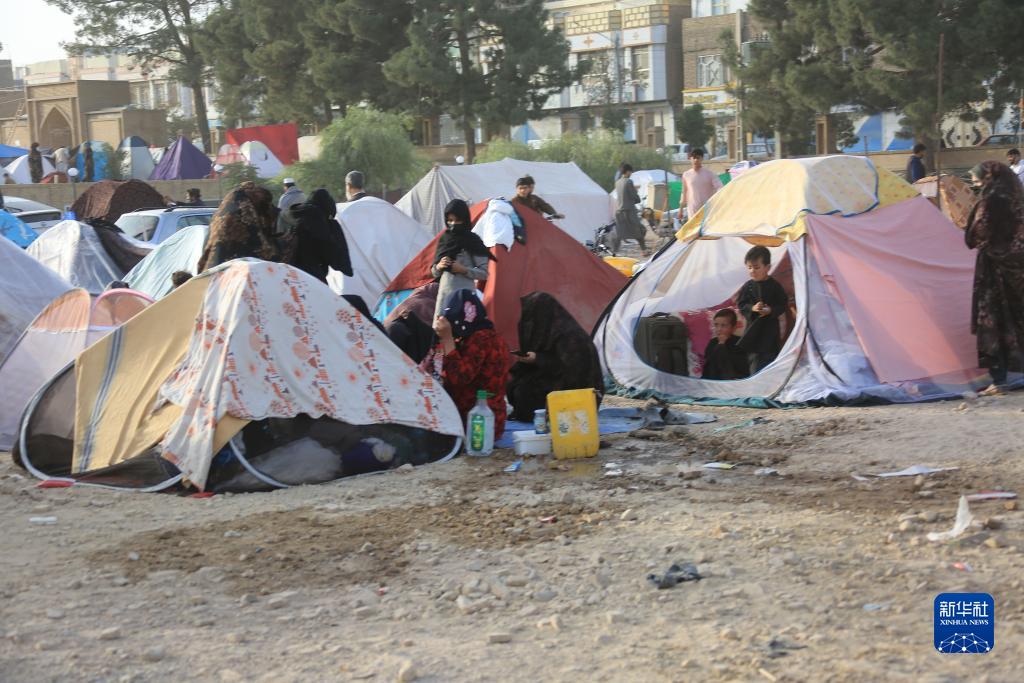 10月15日,阿富汗赫拉特省赫拉特市居民住在空地的帳篷中躲避余震。