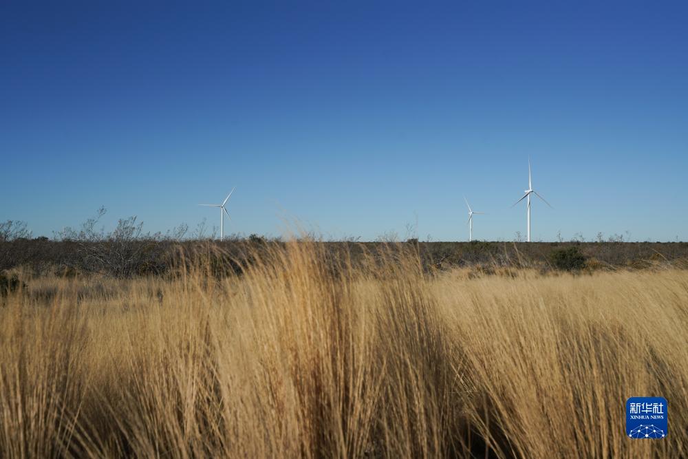 這是6月12日在阿根廷丘布特省馬德林港拍攝的羅馬布蘭卡一期風(fēng)電場(chǎng)。