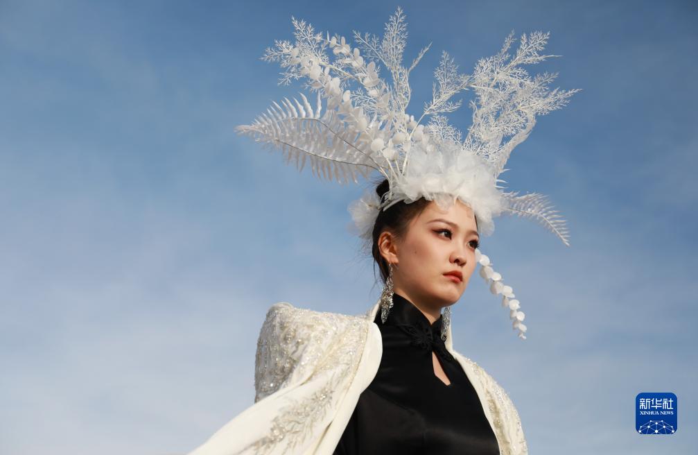 10月15日,模特在2023敦煌國際時(shí)尚周開(kāi)幕秀上進(jìn)行禮服展示。
