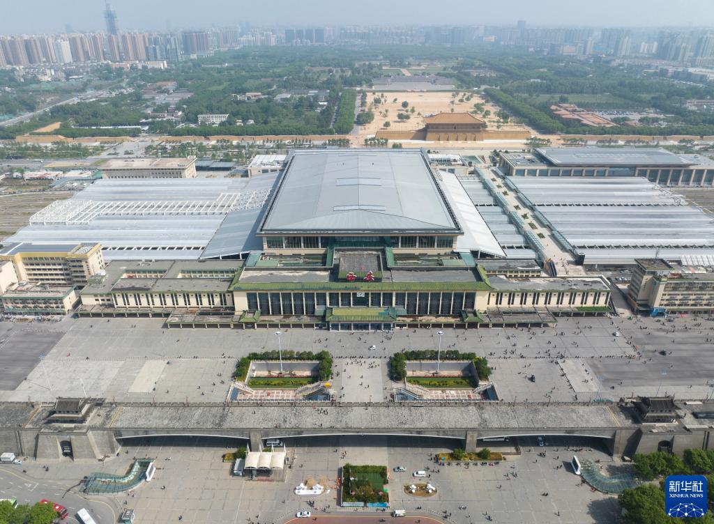 這是西安火車(chē)站與其身后的大明宮國家遺址公園(4月25日攝,無(wú)人機照片)。