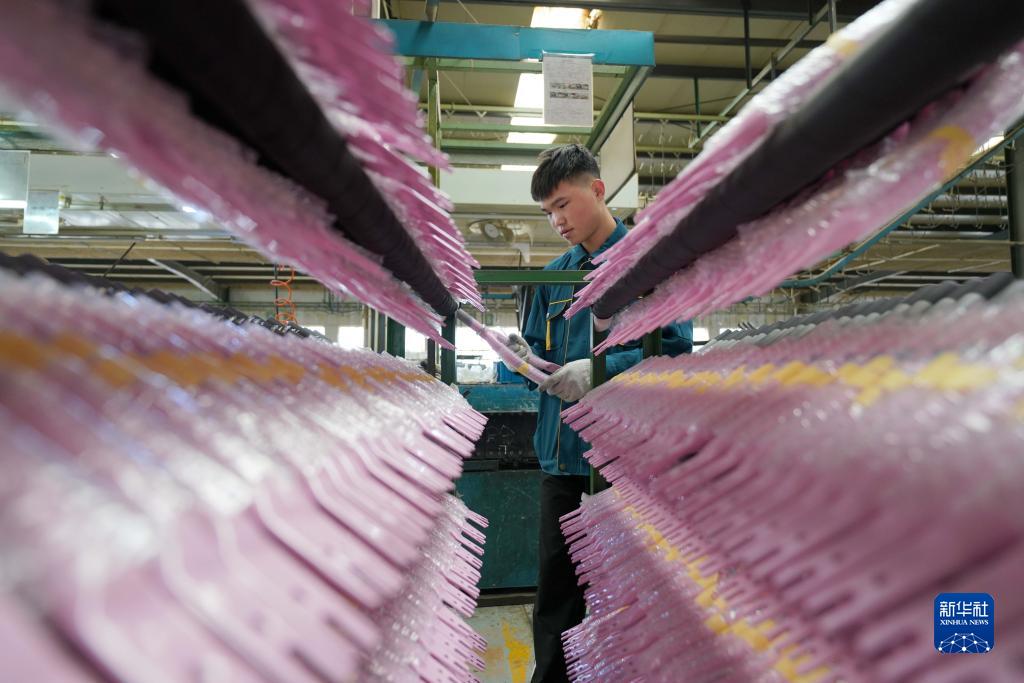 10月16日,平鄉縣一家童車(chē)生產(chǎn)企業(yè)的工人在整理童車(chē)部件。