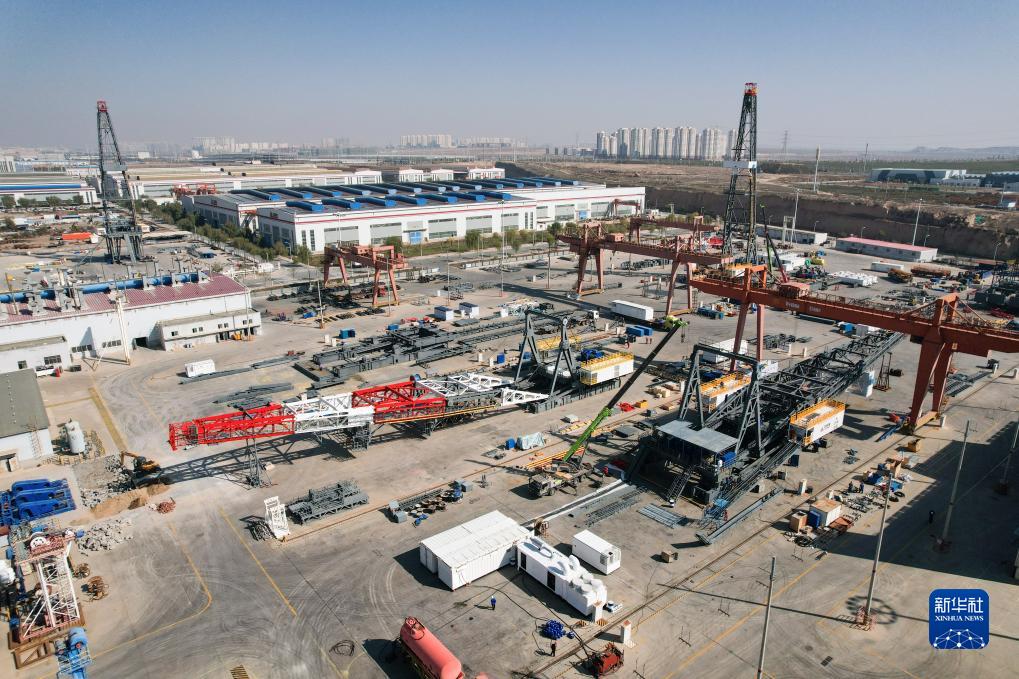 這是10月16日拍攝的蘭州新區蘭石集團高端裝備產(chǎn)業(yè)園生產(chǎn)現場(chǎng)(無(wú)人機照片)。