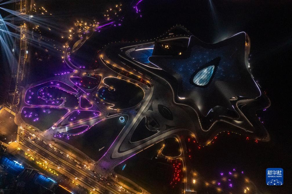 這是10月16日晚拍攝的2023成都世界科幻大會(huì )主場(chǎng)館——成都科幻館(無(wú)人機照片)。