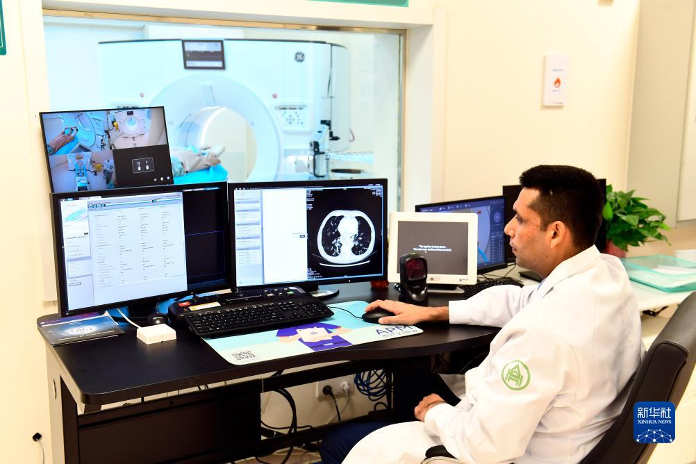 10月16日,在山東大學(xué)齊魯醫院放射科,默罕默德·沙巴茲在CT設備前工作。