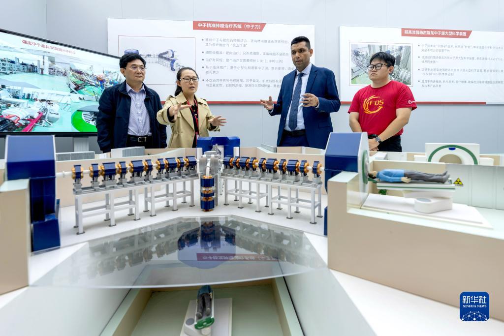 10月14日,在中子科學(xué)國際研究院(青島),穆罕默德·沙巴茲(右二)在了解新的醫療技術(shù)。