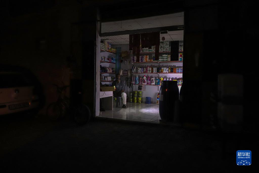 這是10月16日在電力短缺的加沙地帶南部城市汗尤尼斯拍攝的一個(gè)店鋪。