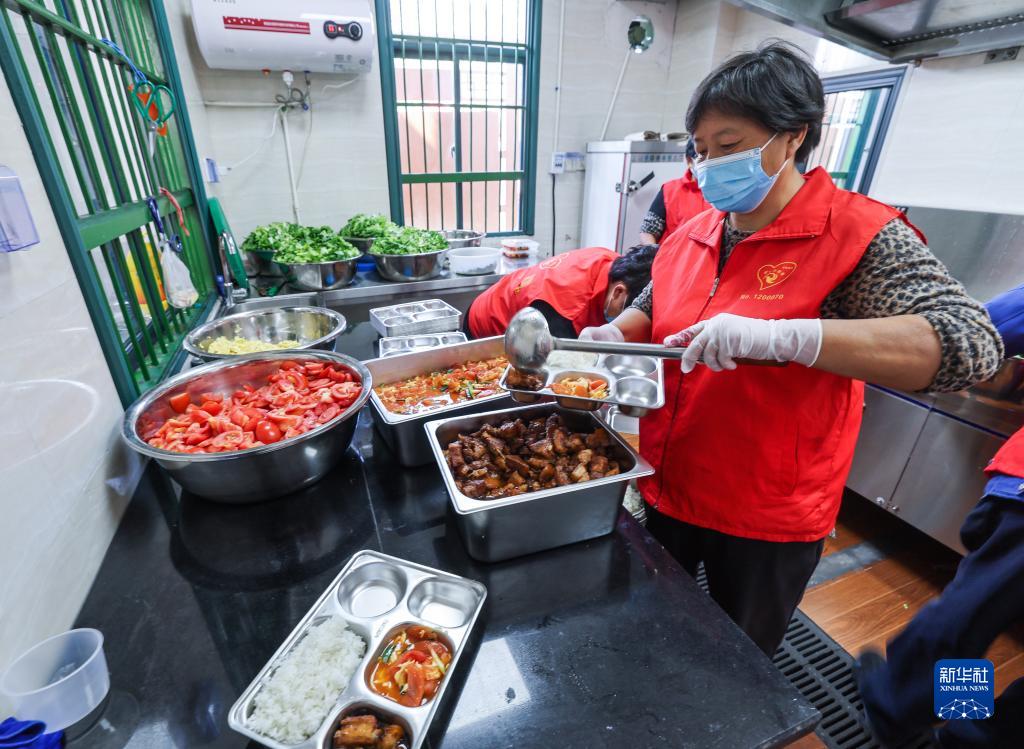 10月17日,志愿者在東白湖鎮樂(lè )齡中心愛(ài)心食堂給老人配餐。