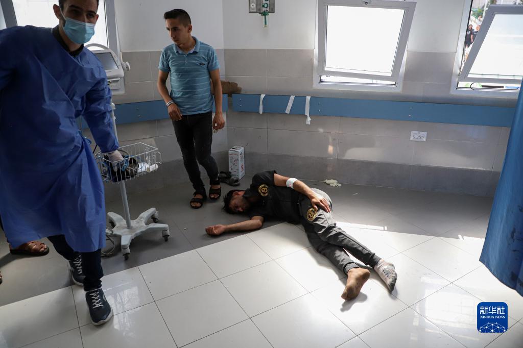 10月17日,傷者在加沙城的一家醫院等待接受救治。