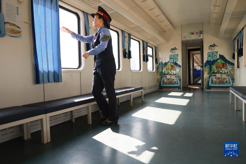 10月17日,5630次列車(chē)長(cháng)在車(chē)廂內做準備迎接乘客。