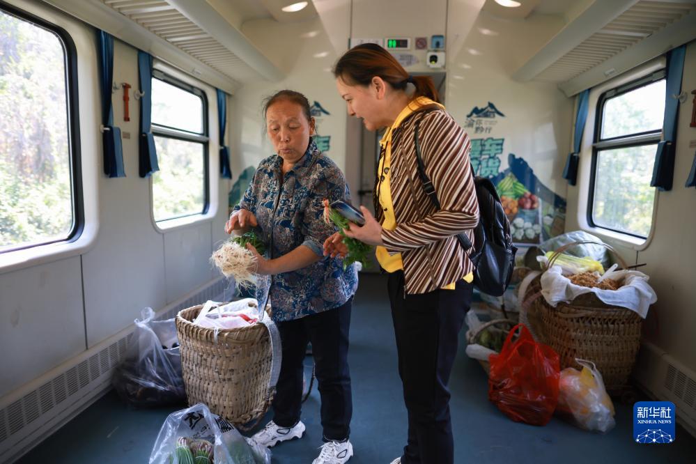 10月17日,沿線(xiàn)村民在5630次列車(chē)上售賣(mài)農產(chǎn)品。