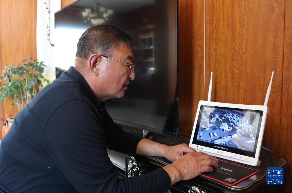10月16日,道爾吉在家中通過(guò)監控查看羊群情況。