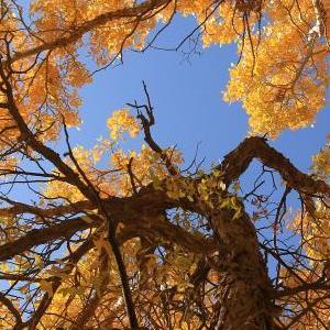 金秋十月,位于三危山下的甘肅省敦煌市莫高鎮的胡楊林被秋色潤染,迎來(lái)一年中的最佳觀(guān)賞期。金色胡楊在陽(yáng)光的照射下,美不勝收。