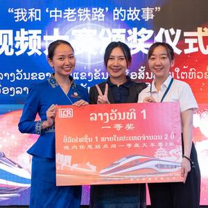 由中國駐老撾大使館舉辦的“我和‘中老鐵路’的故事”短視頻大賽16日在老撾首都萬(wàn)象舉行頒獎儀式。老撾新聞文化旅游部副部長(cháng)萬(wàn)西與中國駐老撾大使館臨時(shí)代辦王暢共同為獲獎?wù)哳C獎。
