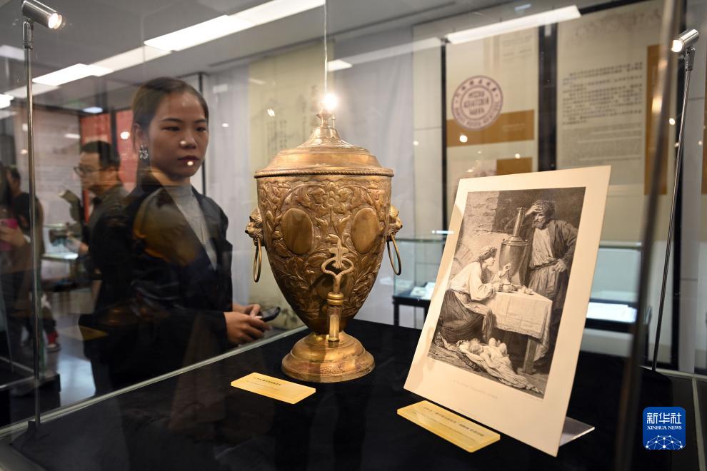 10月17日,觀(guān)眾參觀(guān)展出的俄羅斯鍍銀茶炊。