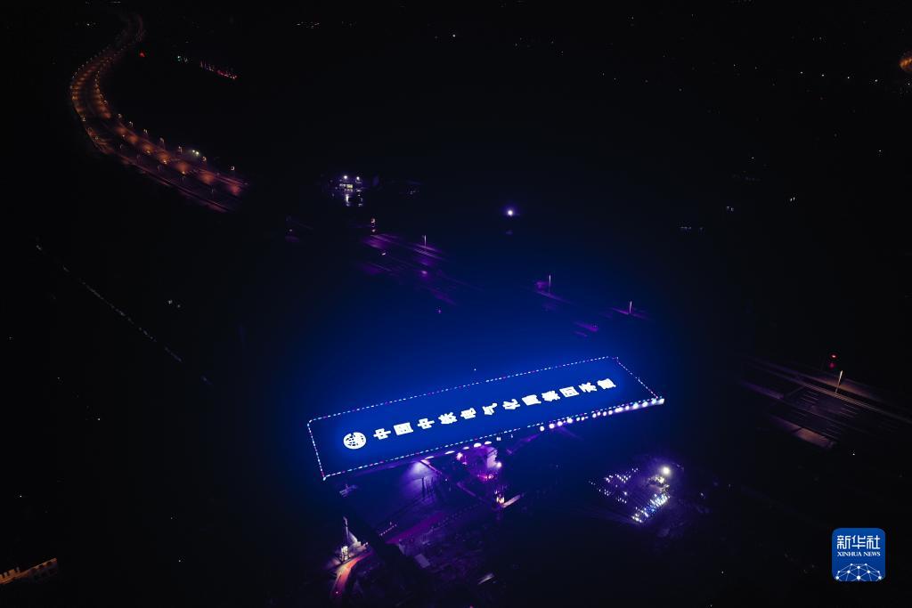 石家莊市中華北大街上跨西環(huán)線(xiàn)鐵路T型剛構橋轉體現場(chǎng)(10月18日攝,無(wú)人機照片)。