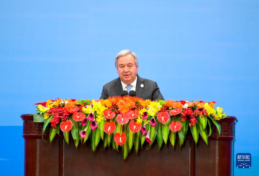 10月18日,第三屆“一帶一路”國際合作高峰論壇開(kāi)幕式在北京舉行。這是聯(lián)合國秘書(shū)長(cháng)古特雷斯在開(kāi)幕式上致辭。