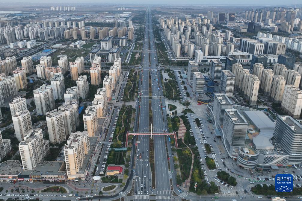 這是10月17日拍攝的蘭州新區城市建設景色(無(wú)人機照片)。