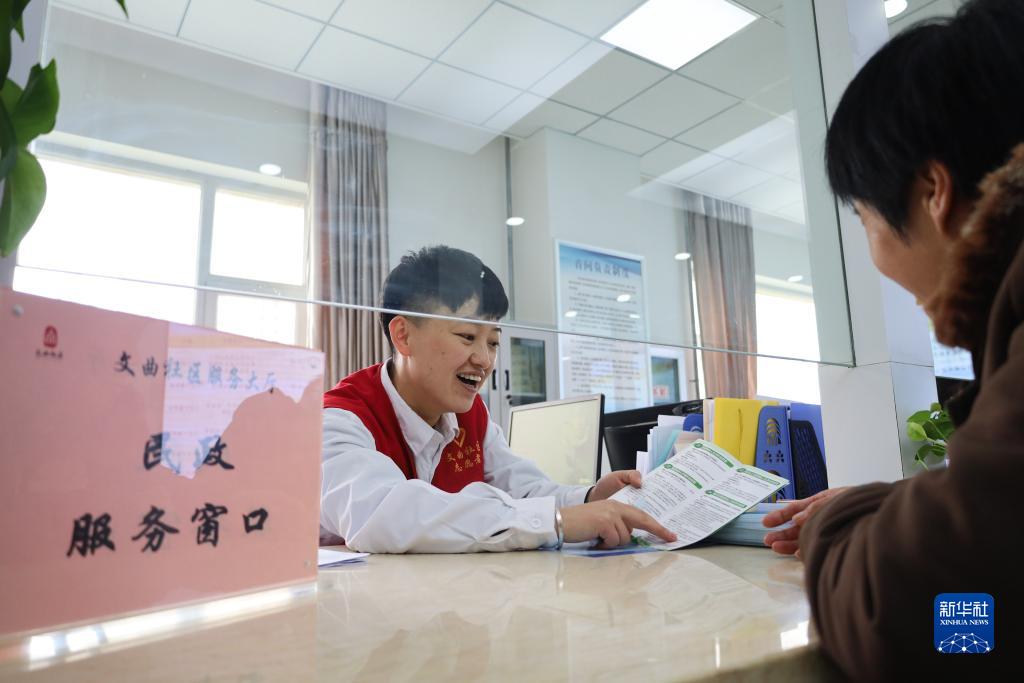 10月17日,在蘭州新區西岔園區文曲中心社區,工作人員為市民辦理業(yè)務(wù)。