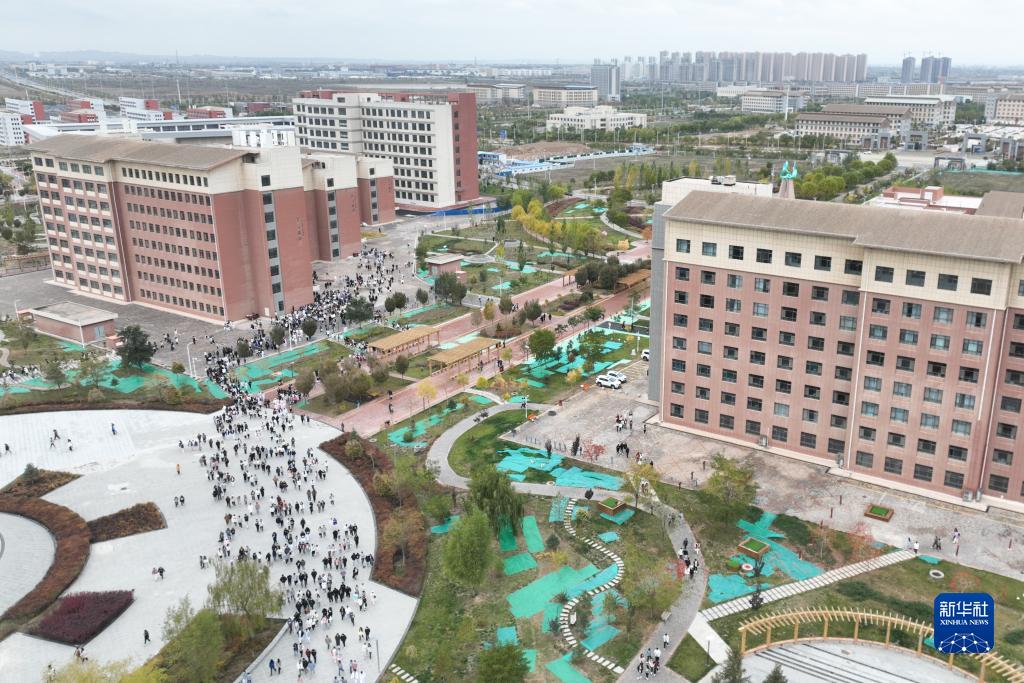 這是10月17日在甘肅省蘭州新區科教園區拍攝的甘肅省衛生職業(yè)學(xué)院一景(無(wú)人機照片)。