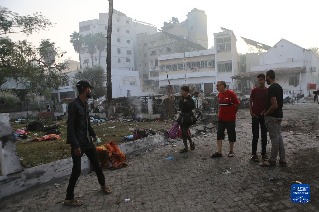 這是10月18日在加沙城拍攝的醫院遭襲現場(chǎng)。