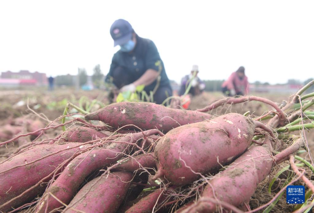 10月18日,河北省石家莊新樂(lè )市協(xié)神鄉北青同村農民在收紅薯種薯。