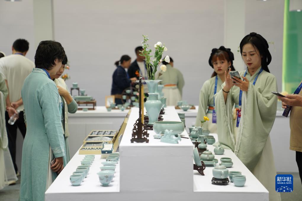 10月18日,人們在瓷博會(huì )汝窯展臺參觀(guān)。