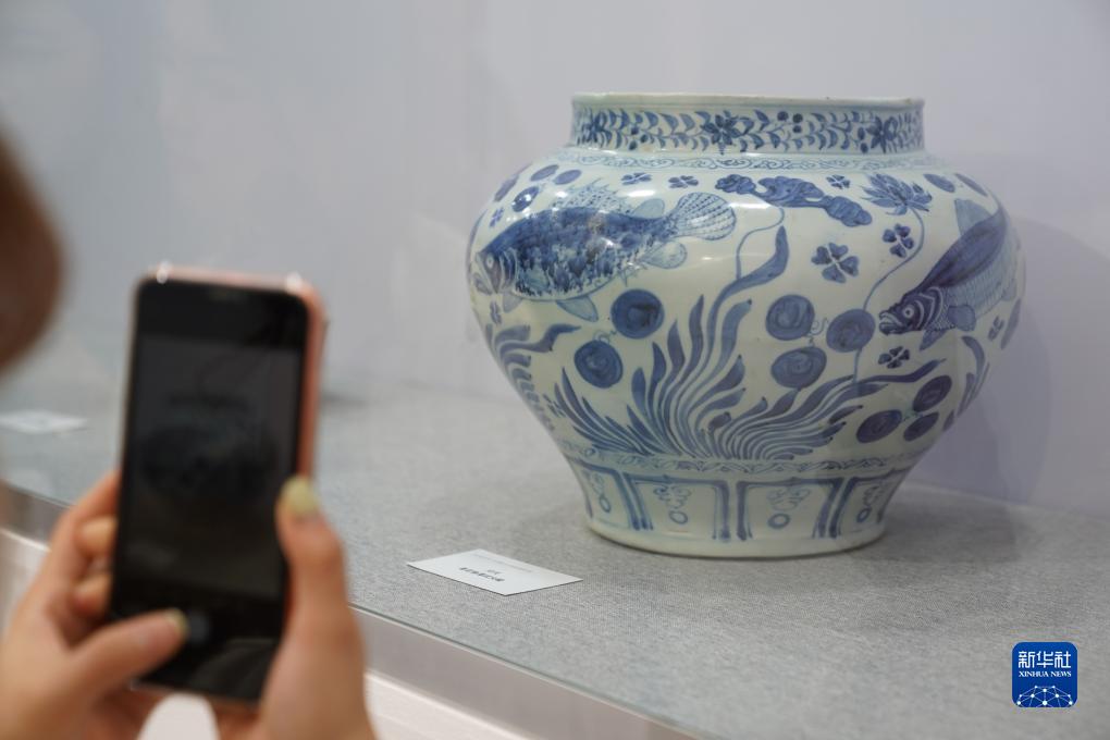 10月18日,參觀(guān)者在瓷博會(huì )現場(chǎng)舉辦的第六屆世界華人收藏家大會(huì )瓷器精品展上拍攝展品。