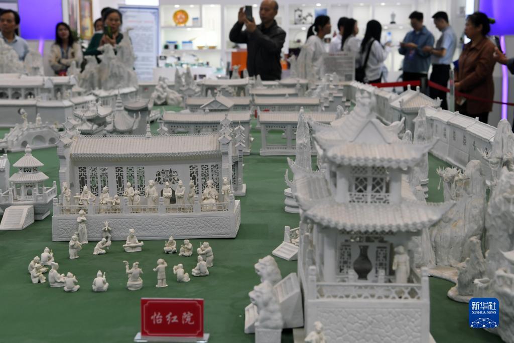 10月18日,人們在瓷博會(huì )現場(chǎng)欣賞展品《瓷造大觀(guān)園》。