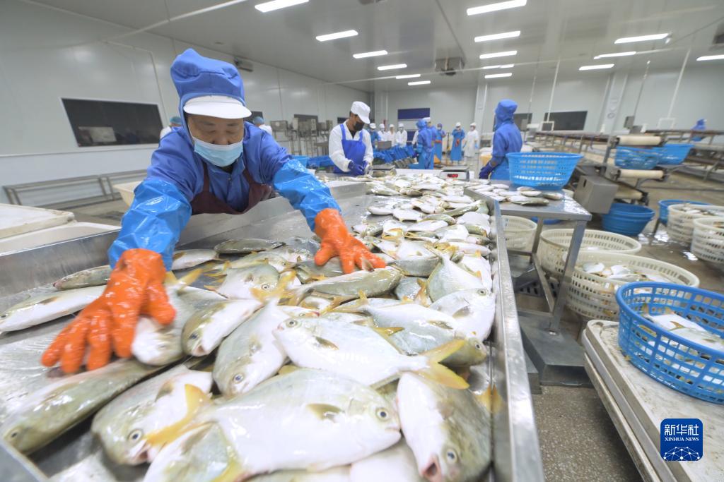 10月17日,位于中印尼“兩國雙園”的福建淼天匯食品有限公司員工在整理準備出口到印尼的魚(yú)產(chǎn)品。