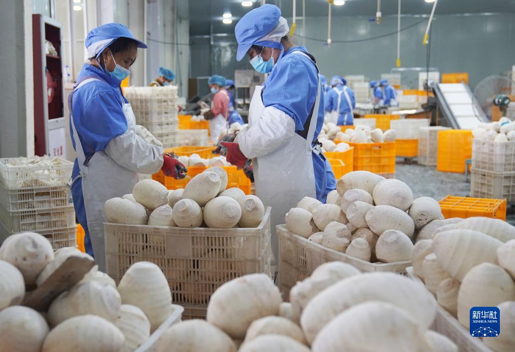 10月18日,在龍巖市長(cháng)汀縣一檳榔芋加工廠(chǎng),工人在加工芋頭。