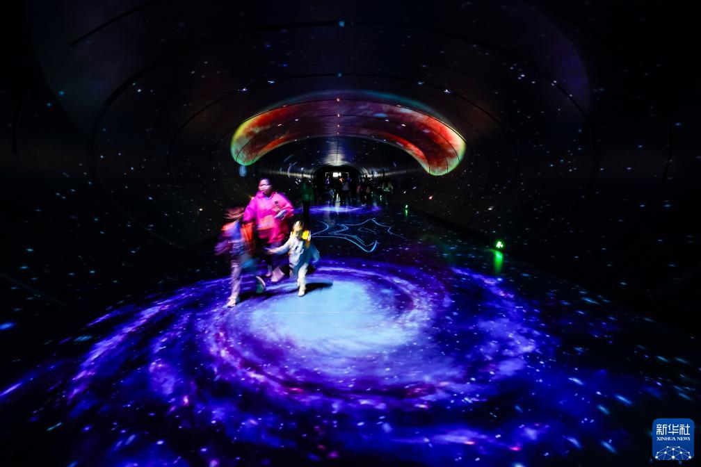 10月18日,在第81屆世界科幻大會(huì )主場(chǎng)館——成都科幻館內,人們走在“時(shí)空隧道”內。