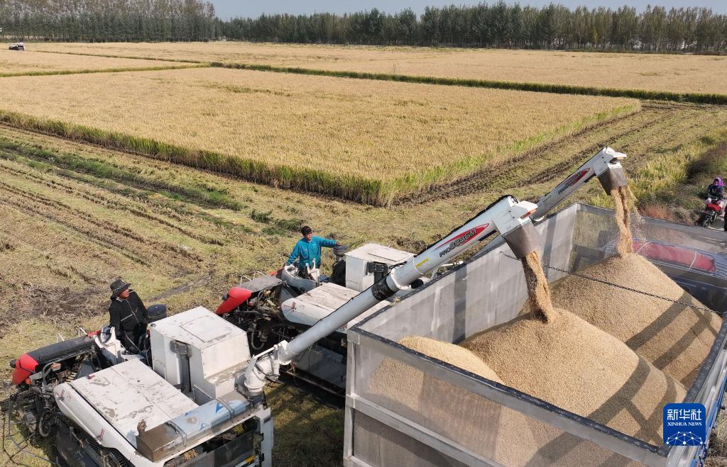 近日,河北省唐山市在鹽堿地上種植的水稻、玉米等秋糧迎來(lái)收獲季節,農民們開(kāi)始適時(shí)收獲、晾曬,呈現出一派繁忙的豐收圖景。