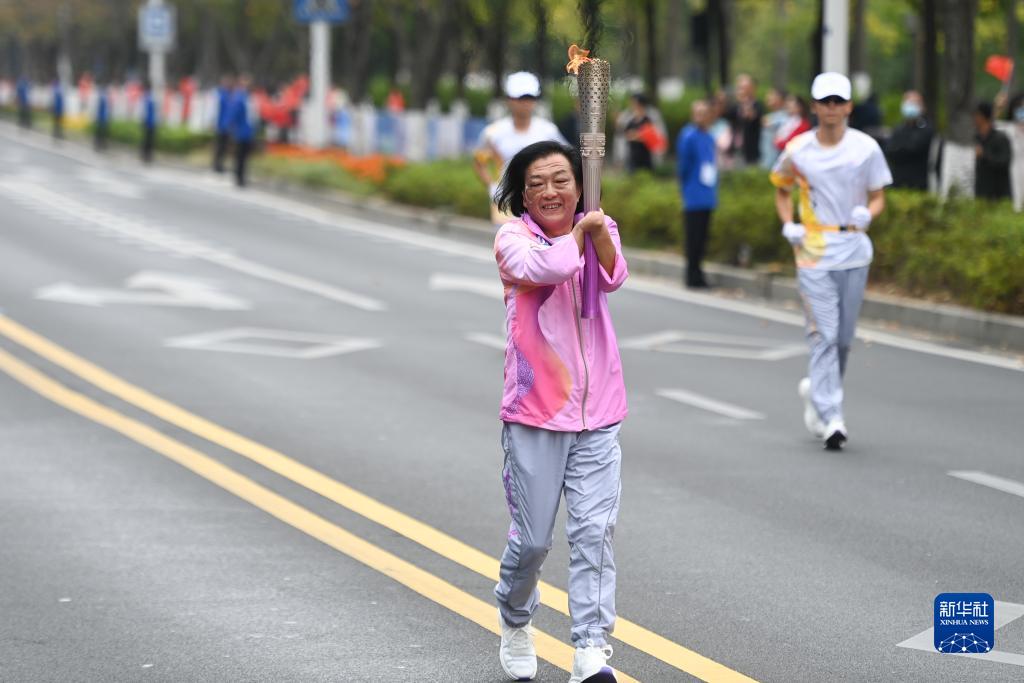 10月19日,火炬手鄭龍華在火炬傳遞中。