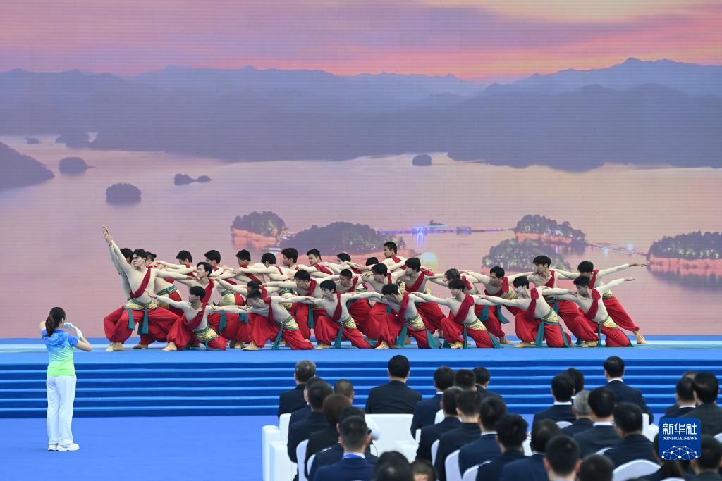 10月19日,演員在啟動(dòng)儀式前表演舞蹈《千島揚帆》。