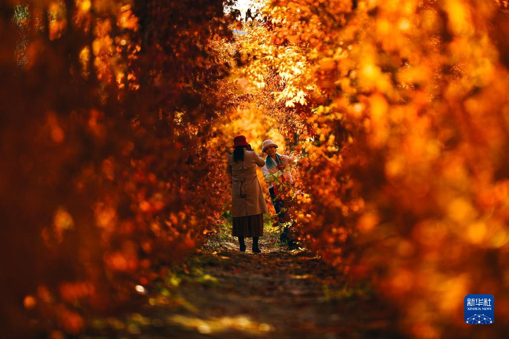 10月19日,游人在長(cháng)春市百木園內觀(guān)賞秋景。