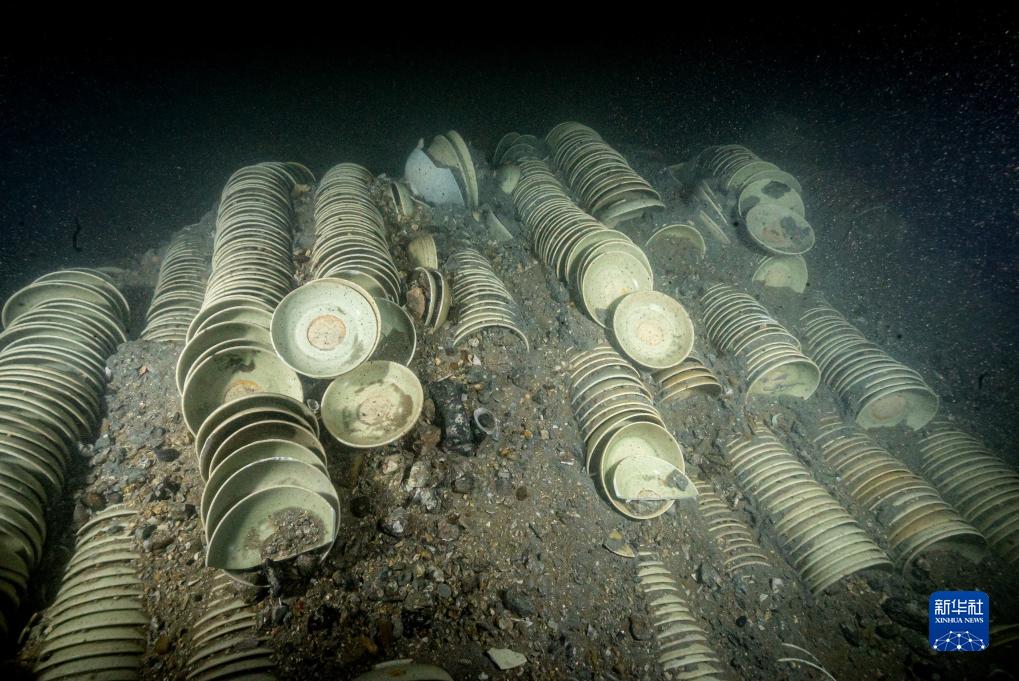 圖為漳州圣杯嶼元代沉船遺址船艙內碼放的瓷器。
