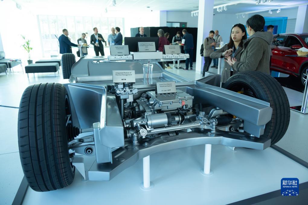這是10月17日在匈牙利布達佩斯拍攝的比亞迪電動(dòng)汽車(chē)底盤(pán)系統。