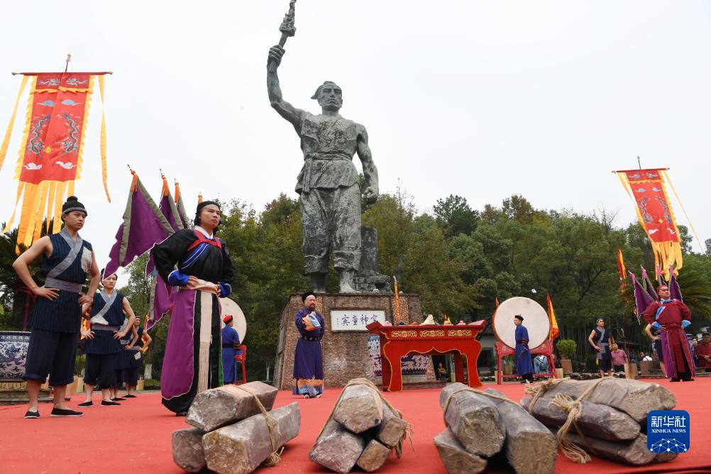10月19日,在復燒點(diǎn)火儀式前,演員進(jìn)行祭祀窯神表演。