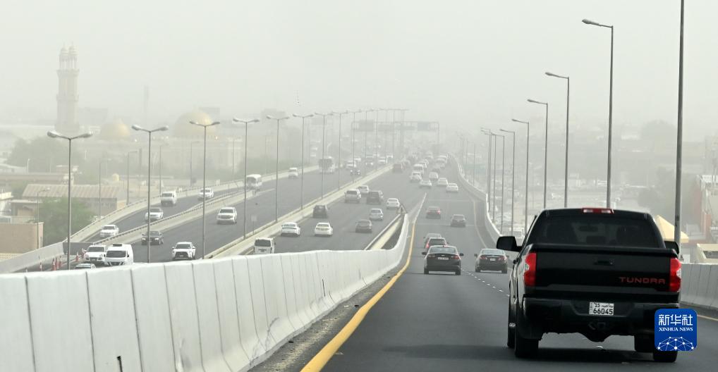 10月19日,汽車(chē)在被沙塵暴籠罩的科威特首都科威特城的街道上行駛。