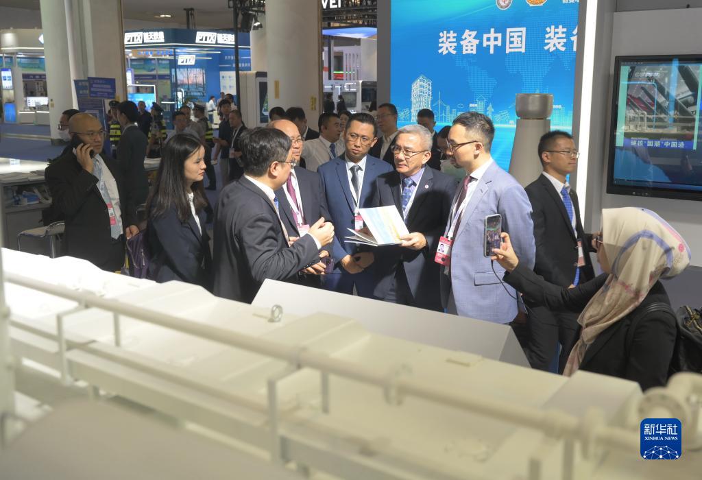 10月20日,嘉賓在特變電工股份有限公司展位參觀(guān)±1100KV特高壓直流換流變壓器等電工設備。