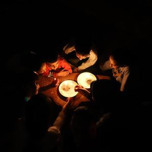 這是10月20日在加沙地帶南部城市汗尤尼斯拍攝的使用蠟燭照明的兒童。